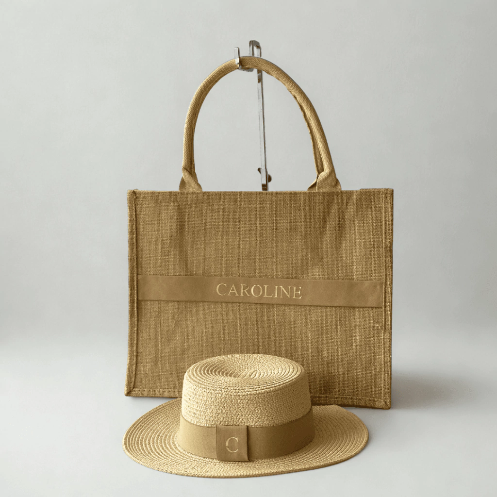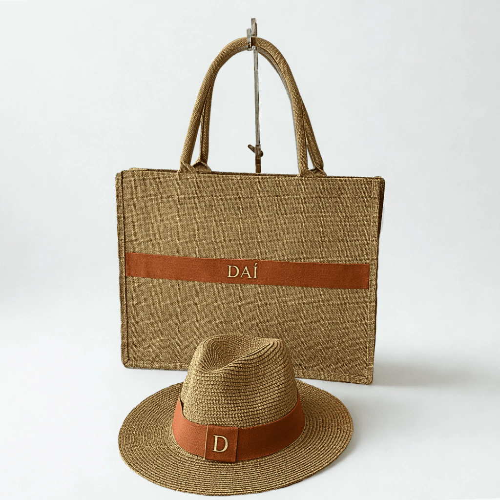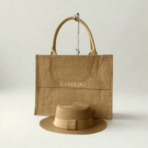 Apresentamos o KIT ILHÉUS, uma combinação irresistível de estilo e praticidade! Este conjunto exclusivo inclui uma bolsa de juta grande, com faixa personalizada com seu nome em material termocolante de alta resistência, com fecho em zíper e forro interno que protege seus itens da areia e sujeira.